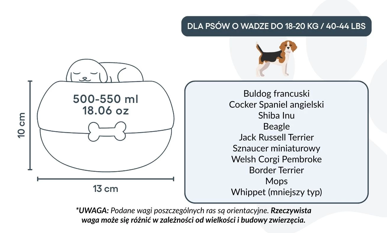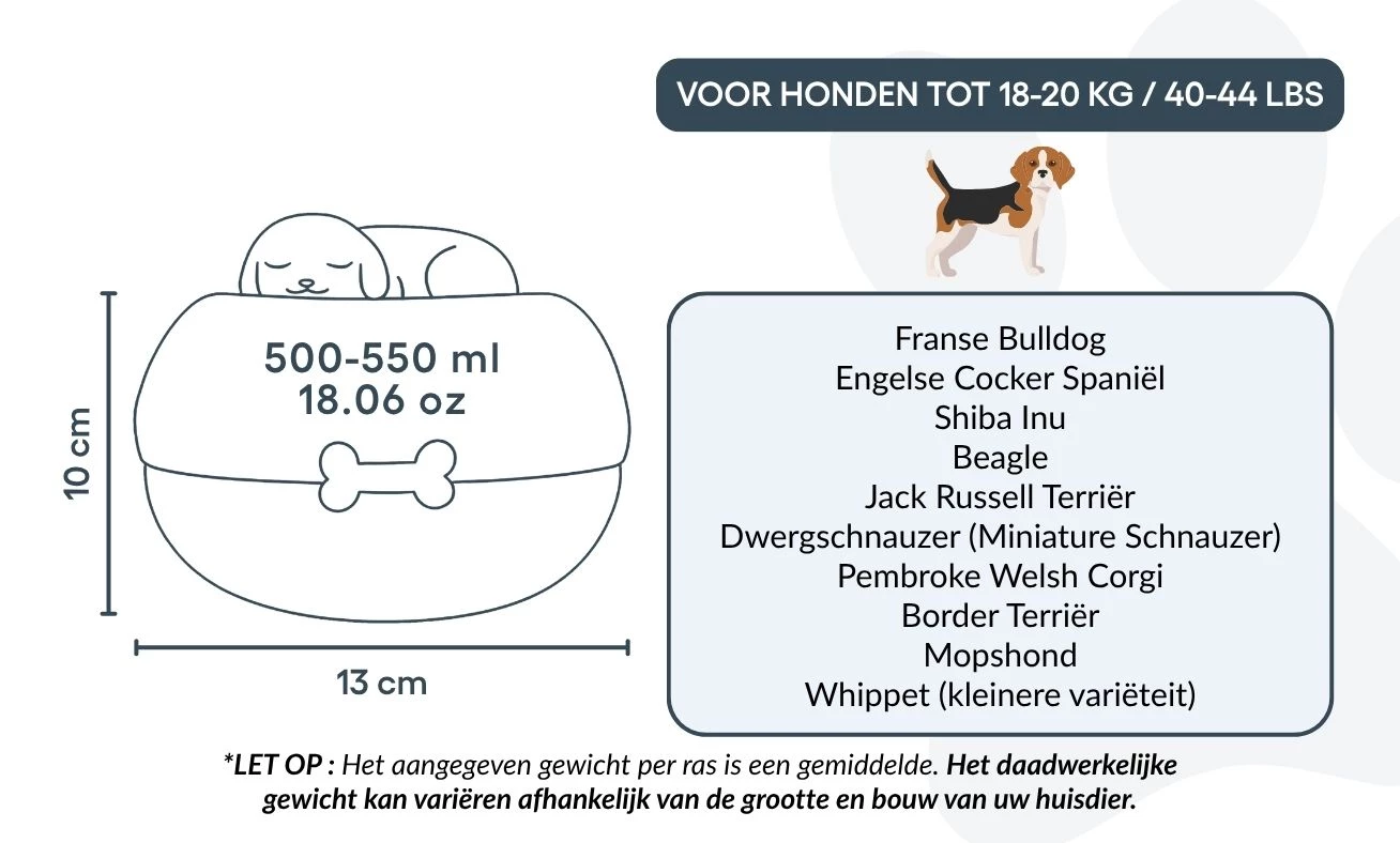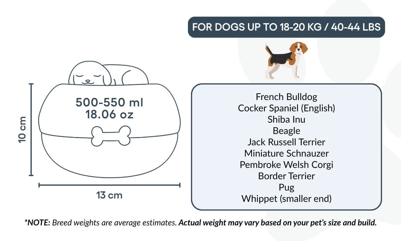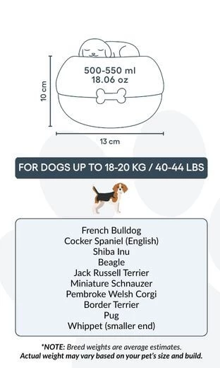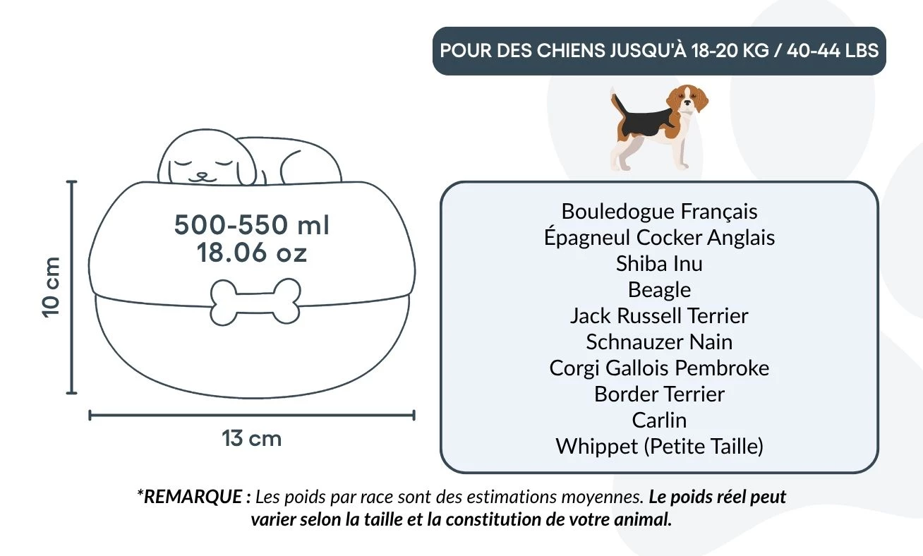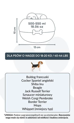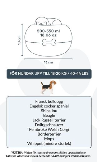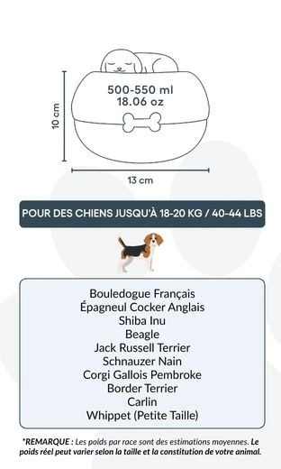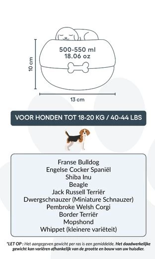 Convient pour un chien jusqu’à 18–20 kg (environ : Beagle, Shiba Inu, Bouledogue Français, Boston Terrier, Caniche Nain, Cavalier King Charles, Basenji, Berger Australien Miniature, Cocker Spaniel, Welsh Terrier).