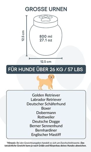 Avec son couvercle hermétique et sa surface lisse, elle combine fonction et esthétique, offrant un hommage durable à votre compagnon bien-aimé. Simple et élégante, elle vous aide à préserver la mémoire de votre chien dans un écrin de tendresse et de respect.