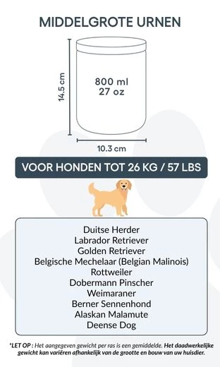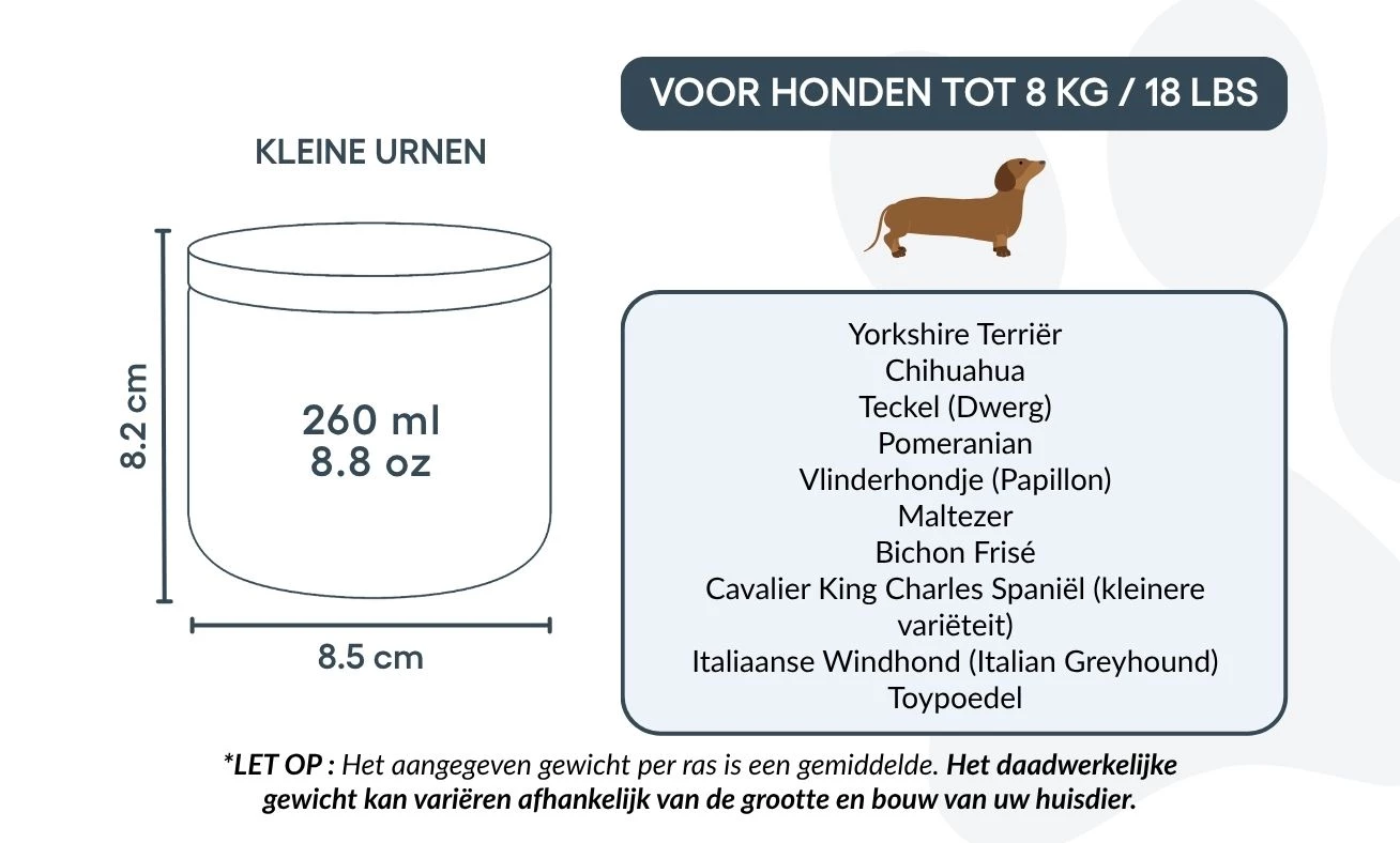 Destinée à préserver les souvenirs les plus précieux, cette urne en céramique pour animal de compagnie est bien plus qu’un simple récipient : c’est un hommage personnel et symbolique à la relation unique que vous avez partagée. Choisissez la taille adaptée au poids de votre chien et personnalisez chaque détail pour créer un souvenir fidèle à son histoire et à votre lien.