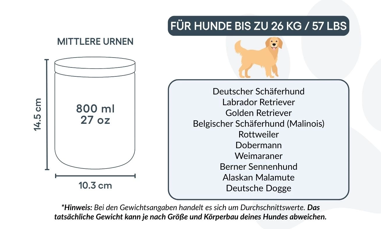 Disponible en deux tailles pour convenir aux petits et moyens chiens, cette urne de crémation est une façon respectueuse et personnelle de dire adieu à votre compagnon. Plus qu’un simple objet, c’est un souvenir durable, conçu pour honorer la fidélité, la tendresse et l’amour partagé.