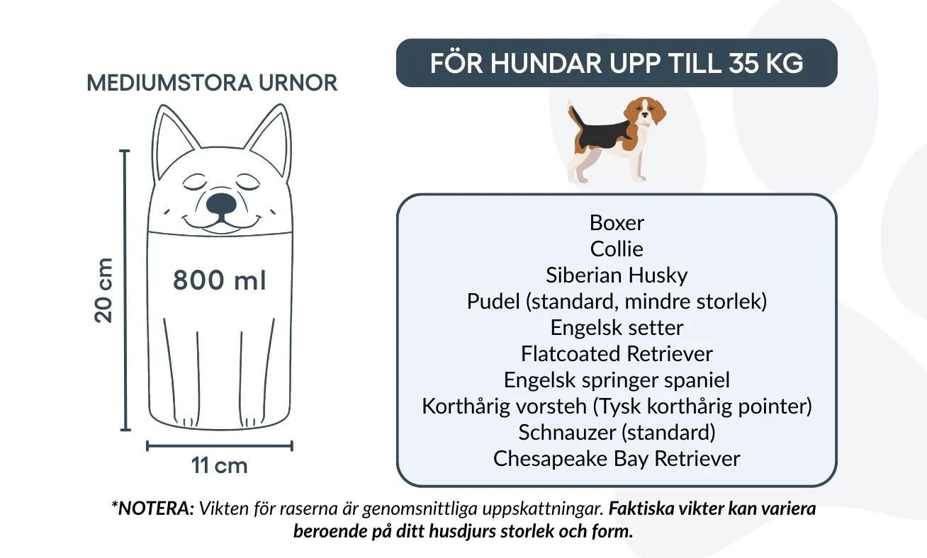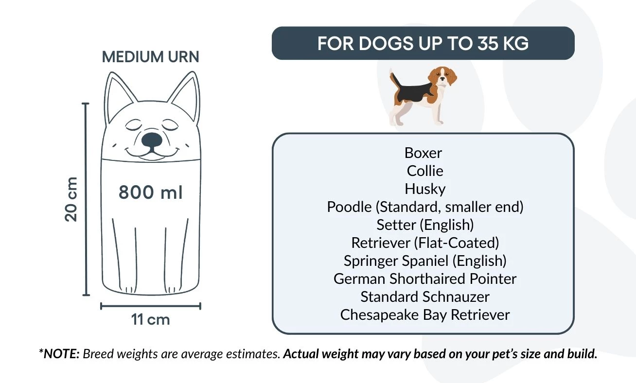 Disponible en trois tailles pour différentes races, du chihuahua au collie, cette urne funéraire en céramique devient bien plus qu’un simple contenant — c’est un hommage personnalisé et durable à l’amour partagé avec votre animal.