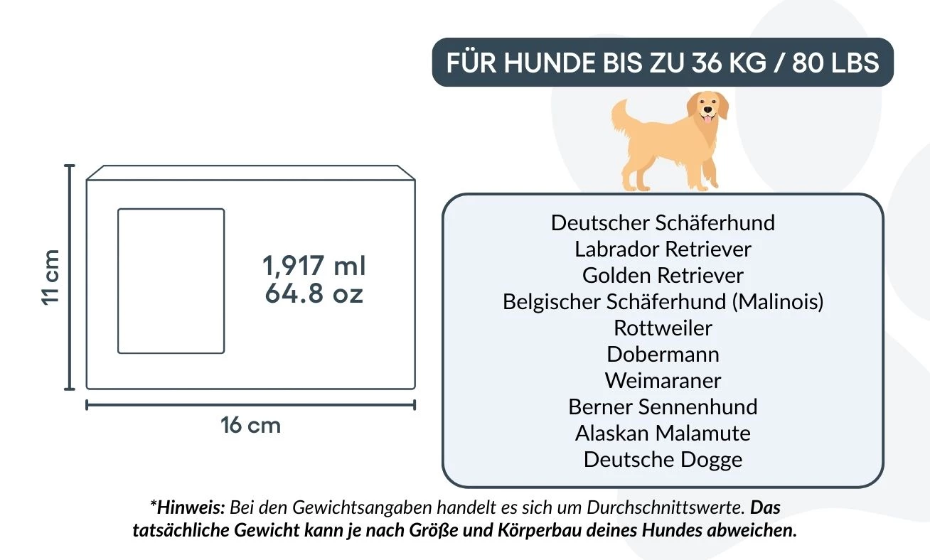 Convient pour les animaux jusqu’à 36 kg / 80 lb