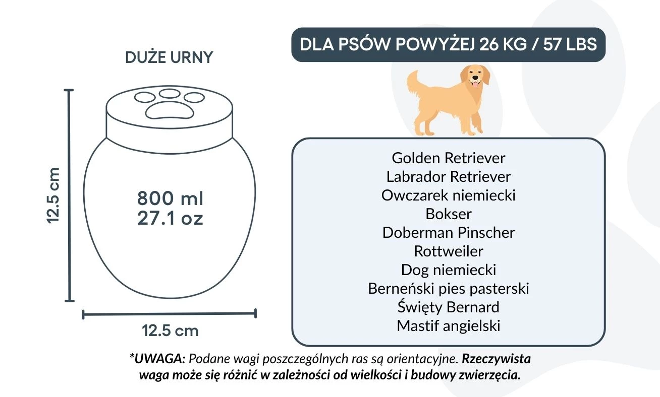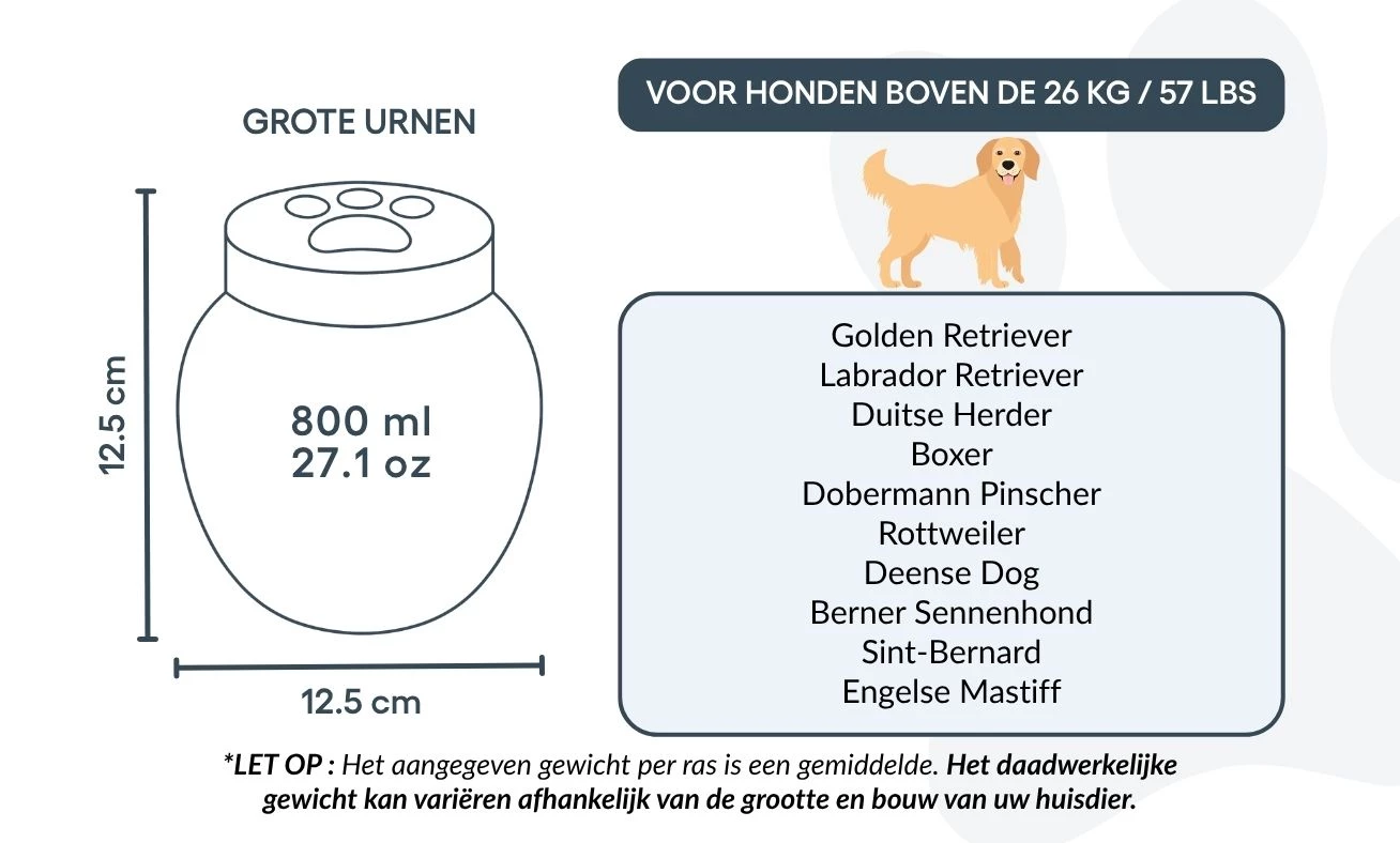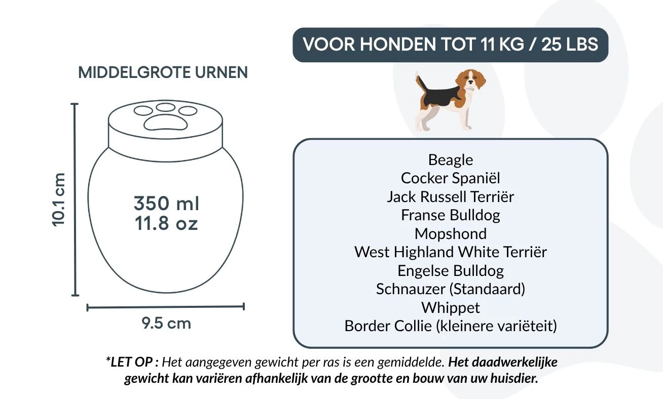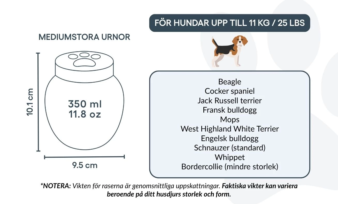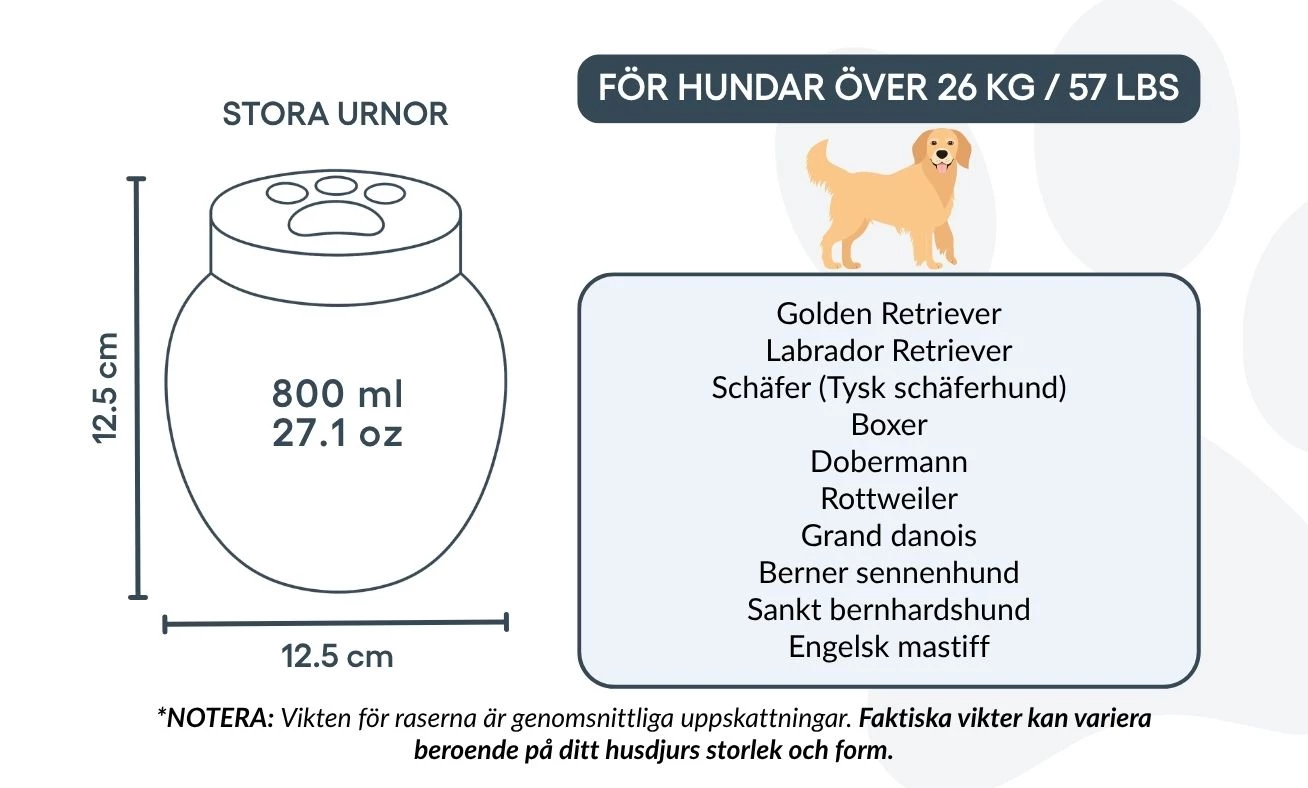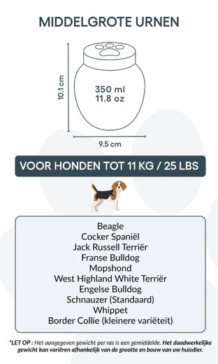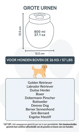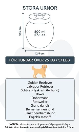 Vous pouvez personnaliser cette urne avec le nom, les dates et un symbole gravé représentant l’amour éternel. Sa finition lisse et son design intemporel permettent de l’exposer fièrement dans votre intérieur ou de la garder dans un lieu symbolique. Parfaite pour les cendres de crémation, cette urne devient un hommage silencieux et élégant au lien unique que vous partagez avec votre animal.